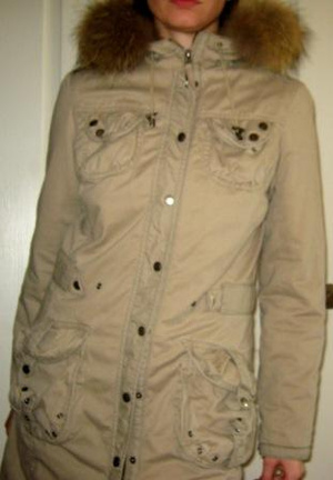 Пальто-парка из хлопка с синтепоновым утеплителем. размер полный 46.На температуру +- 5. Мех отстегивается. Модель очень удобная. Цвет беж. Б/у 1 сезон. Состояние идеальное. Единственный недостаток - отсутствие маааленкой декоративной кнопки на кармане. Цена 500р.