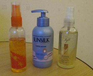 4. Эйвон масло-спрей мерцающий для тела; Эйвон прафюмированный спрей; Сансилк крем-объем (примерно полтюбика) - отдам