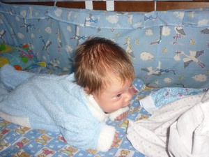 а вот это фото не очень удачное, но здесь видно как мы голову держим, врач говорит, что очень крепенький малыш)))