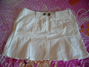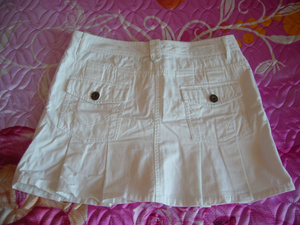 3. Юбочка ОСТИН, джинсовая белая ткань. Состояние идеальное, носила мало. Размер написан S, на мой 44-46 хорошо было. Длина 35см, талия 78см, носила ее на уровне между талией и бедрами. Цена 500руб.