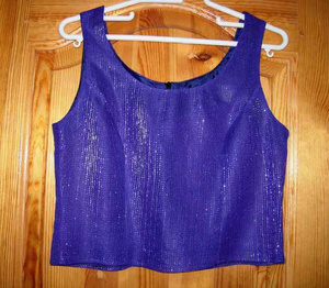 Продам топик сиреневый, с блестящей рюлексной ниткой, б/у 1 раз, по спинке замочек, р-р 44-46. 250 руб.\