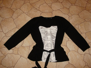 2. Кофточка комбинированная Bee Free. Трикотаж+атлас. Типа двойки. Есть поясок. Размер свободный - 42-44-46. Цена 600р.