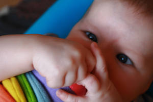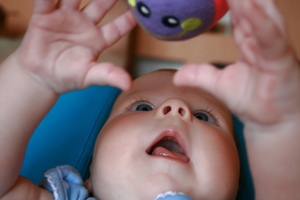 Я Ванюхе стелю на пол большущее теплое одеяло - фиг! Он с него уползает. На голом полу-то всяко интереснее!