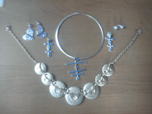 1. комплект Колье+сережки-гвоздики с голубой эмалью - 500 руб.
