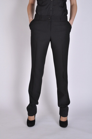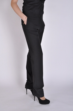 Лаконичная модель прямых узких брюк с низкой посадкой. Свободное облегание по бедрам дарит ощущение комфорта. Спереди есть прорезные косые карманы, а на ягодицах лишь их имитация в виде аккуратных планок. Узкий пояс со шлевками позволяет украсить брюки изящным ремешком. Обувь с высоким каблуком будет хорошим партнером для этой модели.