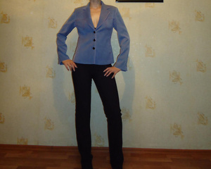 Еще вот классный костюм есть - 100% лен. Новый. Размер 44-46 (если сомневаетесь, пишите в личку ОГ-ОТ_ОБ, я измерю по костюму, подойдет или нет размер). Брюки - прямые по всей длине, жакет застегивается на крючок под грудью.