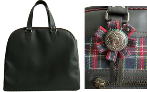 2- Искожа графитового цвета. Размер 39х31 см., боковая стенка и дно 10 см. Застёжка молния, внутри одно отделение и карман. На передней стороне декоративная молния (без кармана). На ручке съёмная брошка. 1000р.
