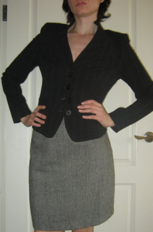 3.Юбка Зарина. Ткань типа твида. Серая в крапинку. Фасон вроде "тюльпан". Размер 44. Можно и на 46 по бедрам. до 100см. Слишком свободна в бедрах. Талия ок. 70-72см - 300р (новая)