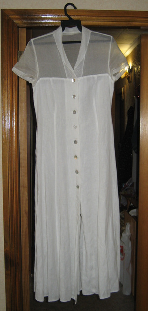 2. Платье лен-органза-перламутровые пуговицы 44 размер. Здесь такого точно не увидите, один нюанс - просвечивает.Прошу 1000 - поверьте, даром.