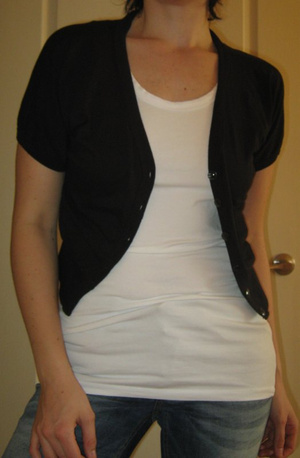 7. Болеро из тонкого трикотажа. Хорошо с любой майкой, рубашкой или блузой. Б/у 2 раза. 200р