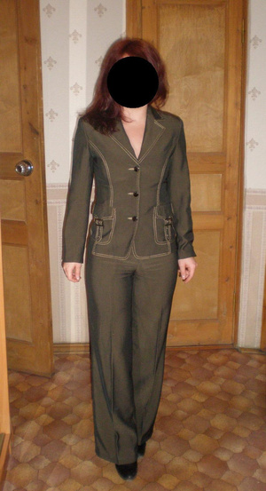 1. Костюм троечка: пиджак, юбка, брюки. В очень хорошем состоянии. К сожалению, стал маловат. Р. 42-неполный 44 На рост с каблучками максимум до 170. = 500 руб.