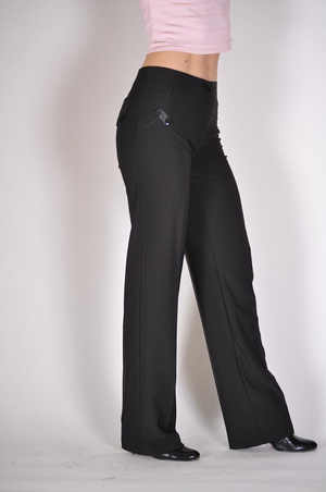 Прямые женские брюки классического кроя. Простой пояс на пуговице. Глубина сидения занижена. Шлевки отсутствуют. Ремень не предусмотрен. Декоративный акцент на пуговицы и карманы. Простая модель рассчитана на повседневную носку: офис, работа, деловые встречи