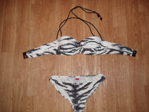 Купальник известной французской фирмы Marc&Andre, брала его с собой в отпуск, потом других накупила, этот продаю. На 75А-небольшой B, трусики до 92. Покупала где-то в районе 3 тысяч, отдам за 650. Купальник оригинальный и сексуальный, лиф жесткой формы - идеально для маленькой груди, плюс можно носить без завязок (они снимаются). Трусики низкой посадки. Узор темно-зеленый на белом (имитируют отблески воды)