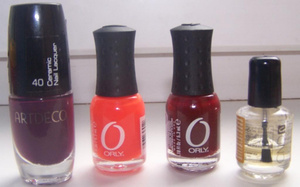мини-лаки orly, тона 40-ультра-оранжевый неон и 72 бордо