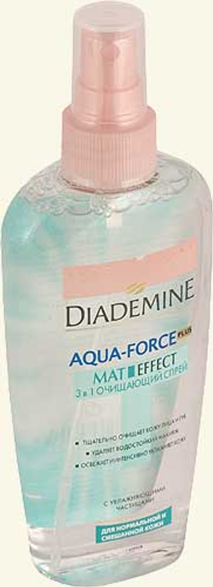 1. Очищающий спрей Diademine, 3 в 1. Удаляет косметику, в т.ч. водостойкую. Очищает, увлажняет, матирует. Не надо смывать.