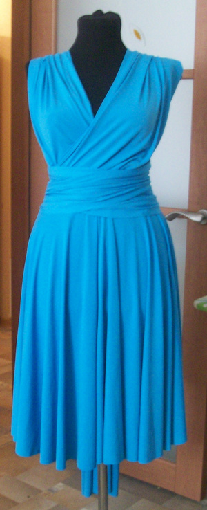 Правда, в некоторые из превращений возможны только с посторонней помощью. Мое конкретное – до колена, красивого лузурного цвета. (есть на фотографиях). Отмечу ткань. Не мнется, но при этом очень дорого и эффектно смотрится.Оно one size, то есть на любой размер - от 40 до.... Вообще вещь недешевая, но я его урвала на закрытой распродаже. НОВОЕ. Продам за 3000 рублей