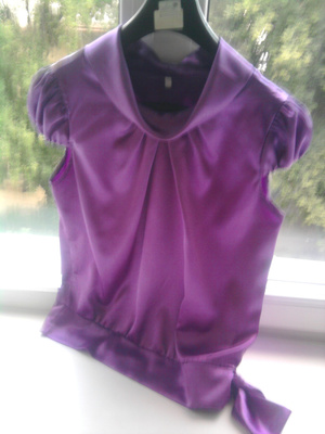 6. блузка из фиолетового атласа, состояние новой, размер 42-44 - 200 рублей