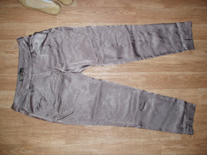 Cуперские укороченные штанишки Love Republic (на рост от 170 как капри или семь восьмых), потрясающе садятся, очень приятный материал типа шелка. Надевала ровно один раз прошлым летом, тогда они на мне еще кое-как застегивались , сейчас уже нет. Ни за что бы не рассталась, если б не стали малы. В идеальном состоянии, кроме того, что за тот раз, когда я их надевала, там оторвался крючок и пуговица - починить 5 минут.В связи с этим отдам за 500 рублей. покупала где-то за полторы. Размер 40-42, на бедра до 90 включительно. Фото не передает красоты, очень классные - можно носить как с каблуками в качестве нарядного варианта, так и с балетками.