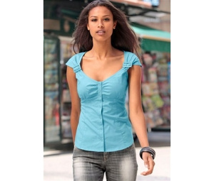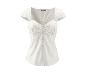 Продам блузу НОВУЮ р. 34 (российсикй - 44) цвет белой шерсти (молочный) Сзади эластичная присборенная вставка. Застегивается на пуговицы. Длина ок. 60 см. Материал: 97% хлопок, 3% эластан. Заказа с каталога quelle, не подошла, нужна грудь. Цена 1.500