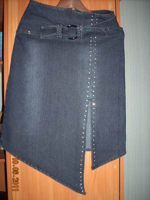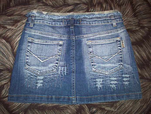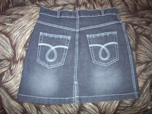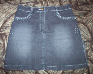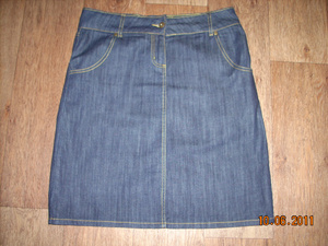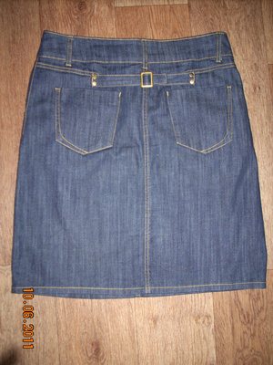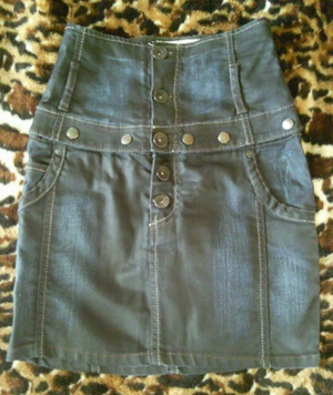 3. Юбку джинсовую с завышенной талией (завышенная часть отстегивается-на кнопках), размер 34 (наш 40-42),одела 1 раз,потом поправилась,лежит без дела в шкафу,юбочка очень классная,цвет в реале темнее,чем на фото. 500 р.
