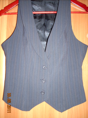 Жилет Kiabi, размер на 44-46, на фигуре очень хорошо смотрится, подчеркивает грудь. Не носился. (Фото бликует).