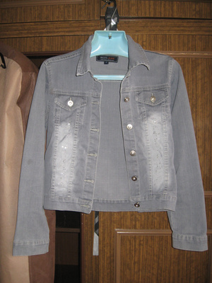 продам джинсовку женскую, светло-серая, в хорошем состоянии, раземер написан М, но скорее всего на 42, длина 48 см, длина рукава 55 см, 400 рэ