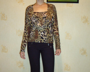 Леопардовая кофточка, материал тянется, размер 46, спереди сеточка, цена 300 р.