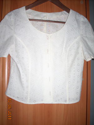 Костюм летний, хлопок перфорированный, цвет молочный, очень легкий. Маркировка 46, я думаю на 44-46.