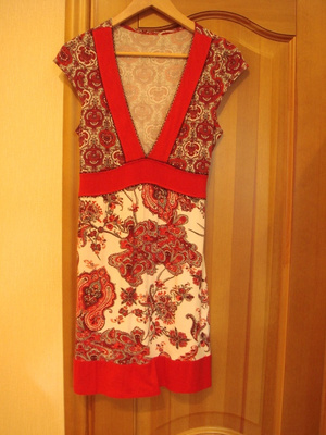 Платье летнее, размер 42-44, ближе к 44, красиво подчеркивает грудь, жатая ткань, состояние нового, одевала несколько раз. Не мой стиль. Цена снижена до 350 рублей.