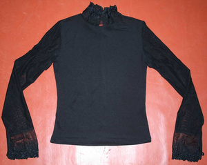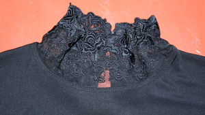 Черная шифоновая блузка с запахом. Рукав 3/4, рюши, завязки. Нарядная, но в то же время строгая .Одета один раз, а теперь лежит в шкафу без дела. Р-р. - 44. Цена - 100 руб. Связь в личку.