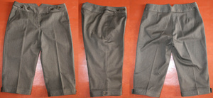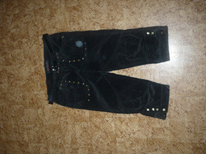 Черно-коричневые вельветовые бриджи б/у (на фото не пятно, а блики). Заклёпки, фигурная вышивка и выбивка. Р-р 42-44, пару раз б/у. Цена - 150 руб, связь в личку.
