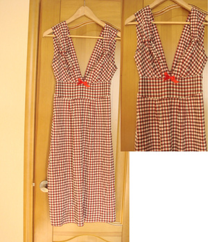 сарафан, р.44-46, длина до колена, очень красиво подчеркивает грудь, сзади широкая резинка, впереди под лифом кокетка, мерить на Маркса, прошу 500 р.