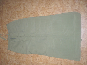 Зеленая длинная легкая юбка б/у, сзади разрез, спереди ширинка и завязки в поясе. Два накладных кармана. р-р. 42-44. Ткань легкая, шуршащая, не жаркая. Связь в личку. Цена - 100 руб.