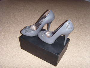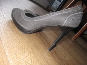 Туфли серые со стразиками, размер 35,5-36. Шпилька около 10 см. Есть магазинные запасные набойки. Ходила в них в офисе.