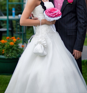 Продам свадебное платье, разм начиная от 40...дальше незнаю, у меня 40-42, но хорошо будет сидеть и покрупнее. Цвет молочный. Очень красивое. Со шлейфом. Прилагается фата и сумочка в том же цвете, кринолин в 3 кольца. Всё было одето 1 раз. Требует химчистки или застирки внизу. На шлейфе чуток оторвался кант, любая швея пришьёт за 1 минуту. Дополнительные фото могу выслать на почту. За всё 6500 руб. Торг уместен.