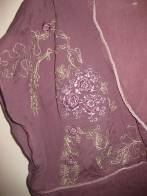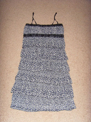 1 платье - из тонкого шифона, отделка тесьмой с пайетками, на спине резиночка, длина по колено. Покупалось за 4200, отдам за 1200.