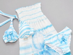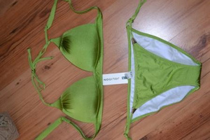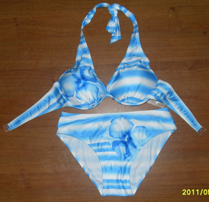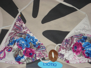 В наборе плавочки-бикини и трусики-стринги, лиф - "шторки" с тонкими поролоновыми прокладками, чтобы ничего лишнего не показывать