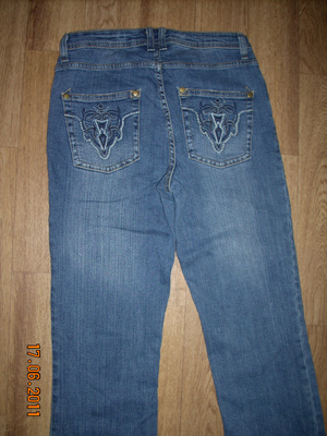 4)Джинсы клеш КАМЕЛОТ, низкая посадка. Размер 29 (на наш скорее всего 44-46 размер). (на рост больше 170 можно - длиноваты) Замеры: от пояса до конца - 105 см, внутренний - 81 см., посадка от пояса (где молния) - 17 см - 400 руб