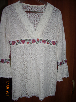 Продам тунику, маркировка 38, по бокам разрезы. Новая. Привезена в подарок из Сирии, оказалась мала. Очень необычная вещь, красиво смотрится с узкими джинсами и легинсами, думаю в Новосибирске в единственном экземпляре :).