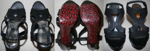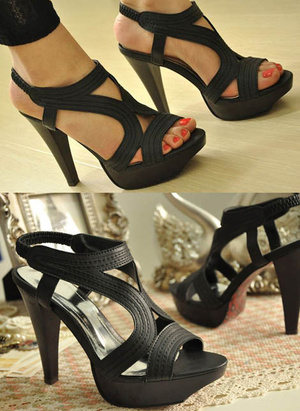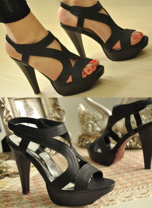 На высоком каблуке и платформе. Двойной ремешок вокруг ноги. Каблук 12,5 см, платформа 3,5см.