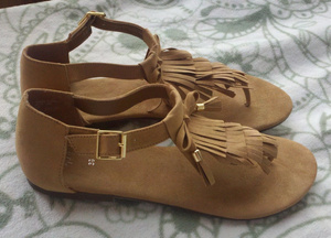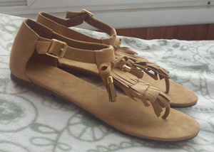 Сандалии H&M, цвет бежевый, р-р 37 (возможно даже 36.5), на узкую ножку. Длина по стельке 24 см. Новые абсолютно, мне малы. Цена 1 200 руб.