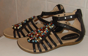 босоножки с бусинами новые, иск. кожа, молния на пятке, подойдут на полную ногу, цвет черный на р-р 37-38, цвет белый 36,5-37,5 цена 650