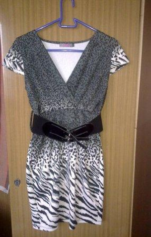 2. Платье зебра, очень приятный материал, плотный стрейч, широкий ремень под грудью, размер 44-46, классно смотриться, животик тоже скрадывает небольшой только, (покупала за 900р), прошу 600р