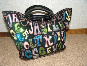 5) сумка текстиль, с выбитыми буквами под замшу. Передняя часть расшита паетками. Ручки пластиковые. 700р.