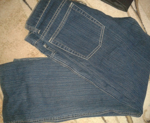 Замеры: талия 36 см, бедра 49 см, длина по шву с внутренней стороны 78 см, общая длина с талии и до конца штанины - 103 см.Ширина штанины 20 см на конце.Средняя посадка.
