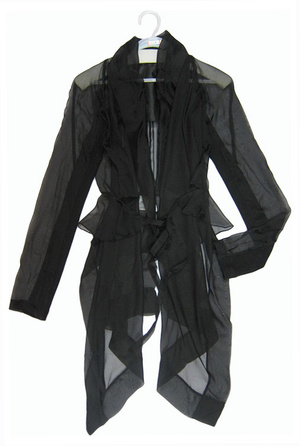 Нарядная кофточка из легкой, но прочной, почти прозрачной ткани, со вставкой на груди, чтоб не просвечивало, глубокое декольте,по декольте пайетки, длинные ассиметричные рукава, внизу у кофты сбоку завязывается интересный узелок. Размер 46-48. Цена 400 руб.