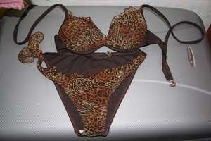 от DKNY оранжевые с розовым и бикини сиреневые с нежно-оранжевым - размер S, подойдут на 44-46
