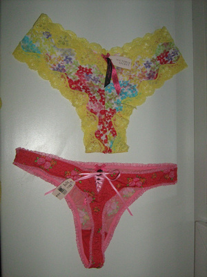 и Victoria's Secret разноцветные "американки" и стринги красные с розовыми розочками сзади с красивой шнуровкой - размер M, тоже на 44-46