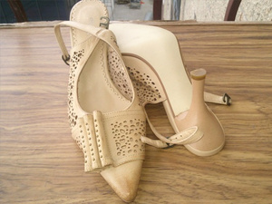 3. босоножки молочно-бежевые, неношенные, на коже внутри есть дефект, снаружи неощущаемый. размер 36-37(регулятор размера). 200 руб