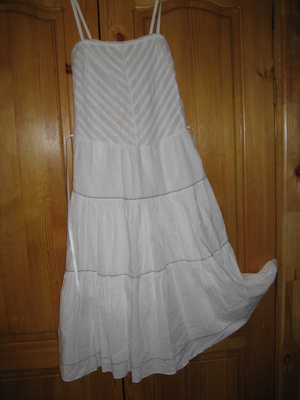 сарафан белый, на миниатуюрную девушку - ОГ 74, ОТ - 74 (с пояском), длина 107 см, от пояса на покладе, сбоку замок, б-у не много, цена 350 руб.